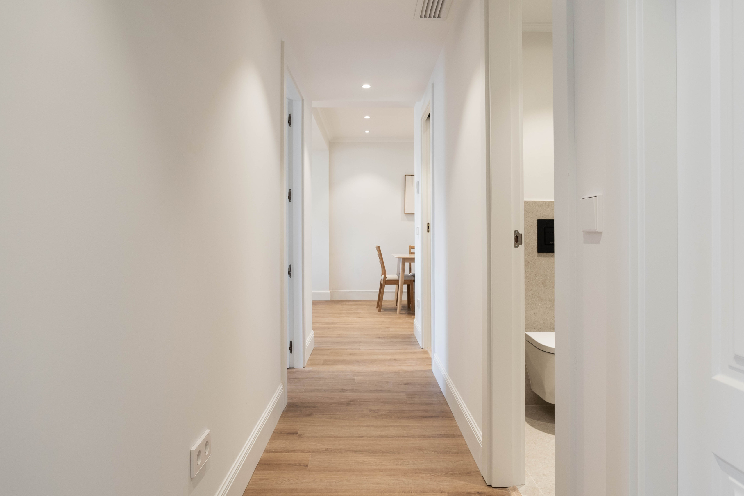 Este apartamento se encuentra en un edificio sin ascensor que ha sido completamente renovado en 2019. La reforma llevada a cabo ha puesto gran empeño en conservar y resaltar los elementos de construcción de origen que forman parte de la tradición y el encanto de Madrid.