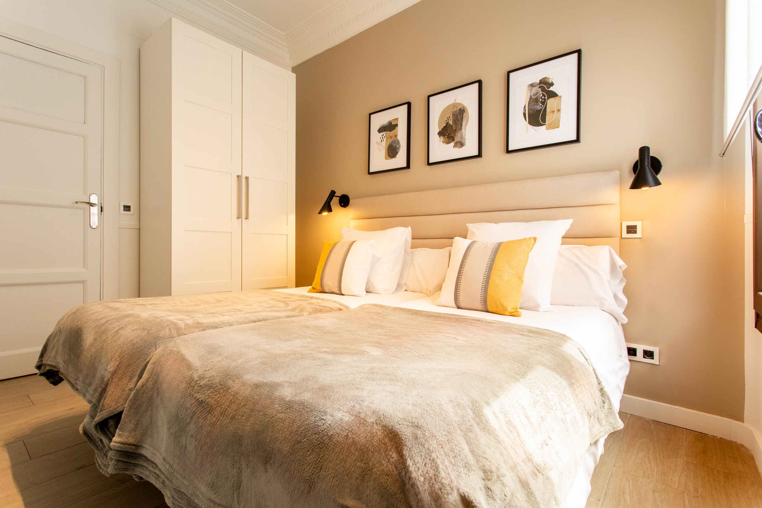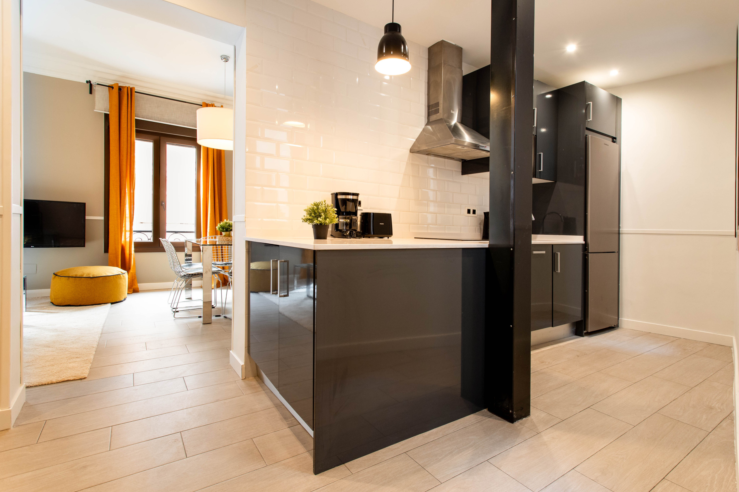 Ubicado en un edificio remodelado propio de los años 50, en el que todos sus apartamentos se dedican a estancias cortas, por lo que es ideal también para grandes grupos. Diseñado, reformado y decorado con calidad óptima para una estancia impecable. Equipados con todo lo necesario para el máximo confort. Ascensor, Aire acondicionado, calefacción, internet wifi, así como equipamiento completo en la cocina de todos los electrodomésticos.