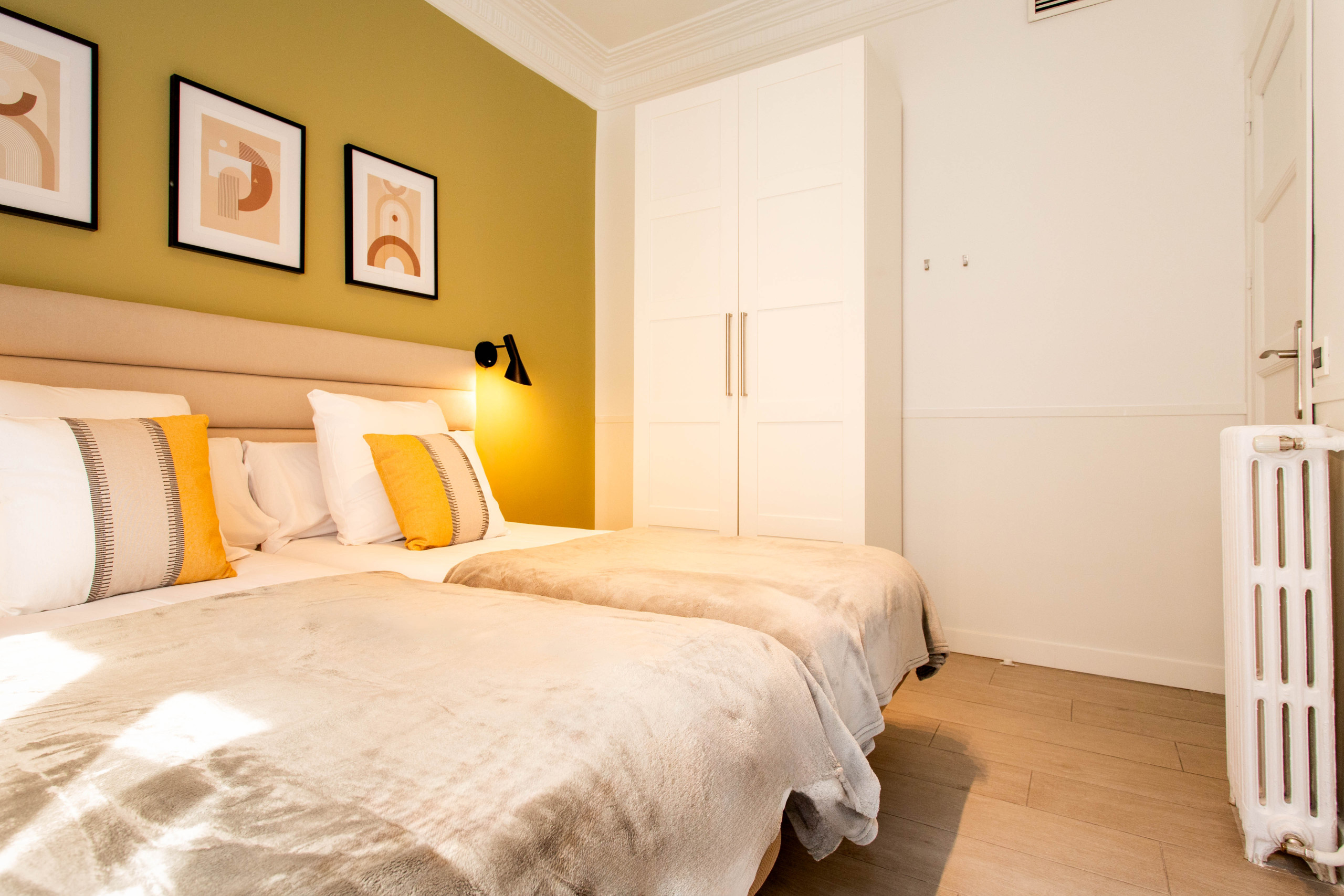 Este luminoso y acogedor apartamento se encuentra ubicado en la primera planta de un tranquilo edificio sin ascensor y cuenta con capacidad hasta para 6 huéspedes.