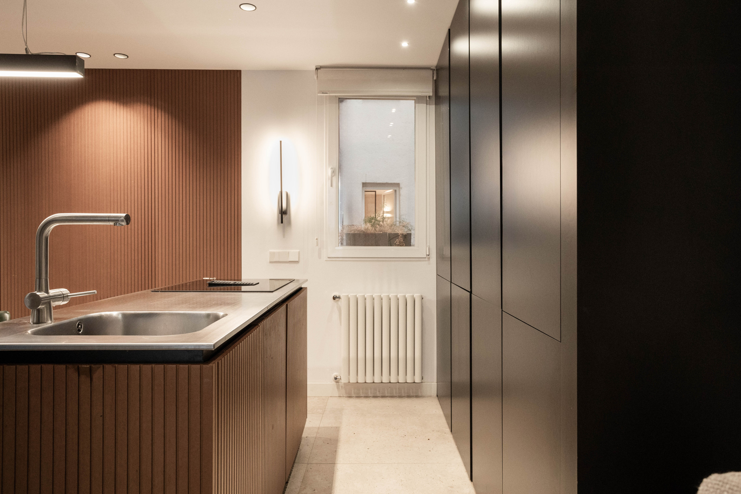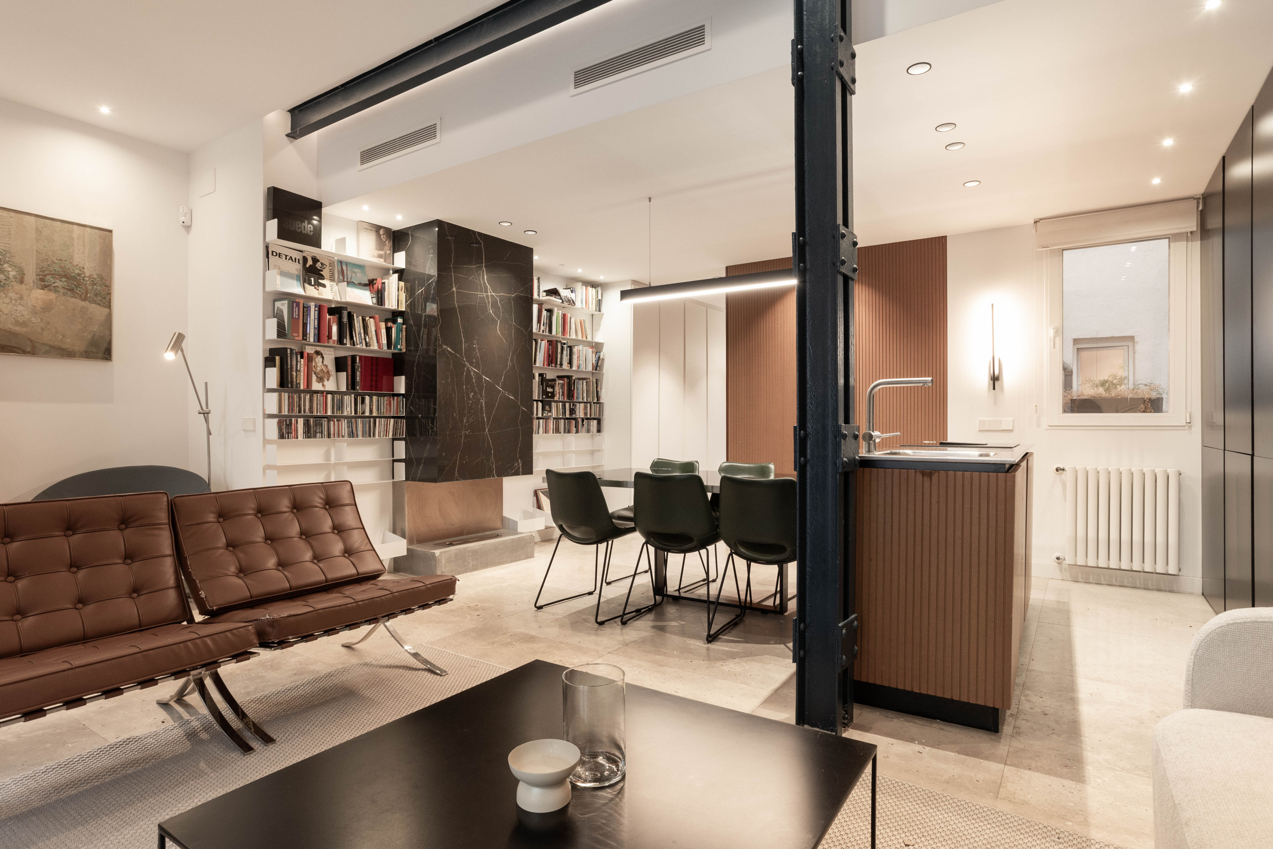 Este apartamento se encuentra en un edificio sin ascensor que ha sido completamente renovado en 2019. La reforma llevada a cabo ha puesto gran empeño en conservar y resaltar los elementos de construcción de origen que forman parte de la tradición y el encanto de Madrid.