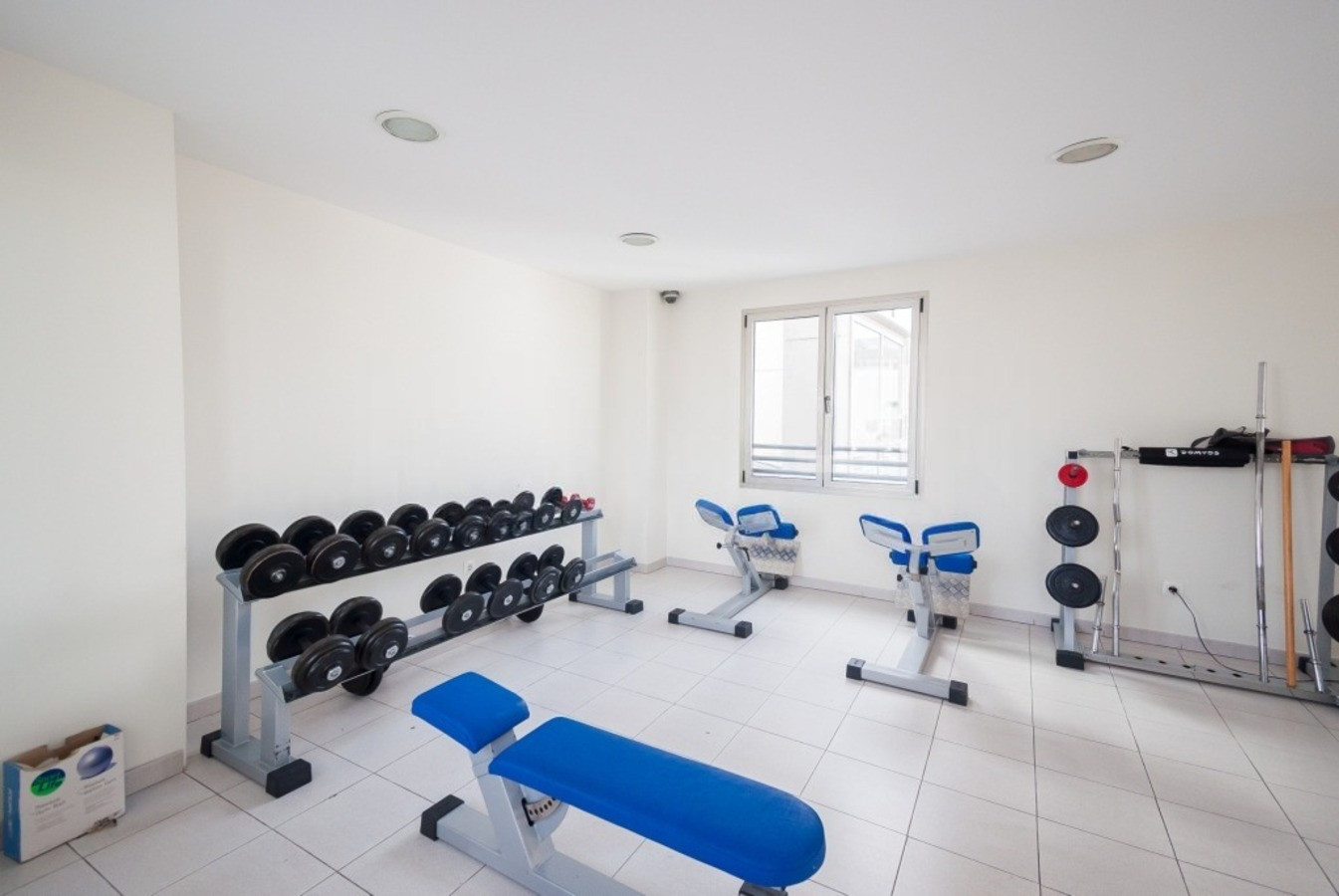 El edificio ofrece gimnasio y una piscina de temporada en la azotea, aportando un plus de comodidad durante la estancia.