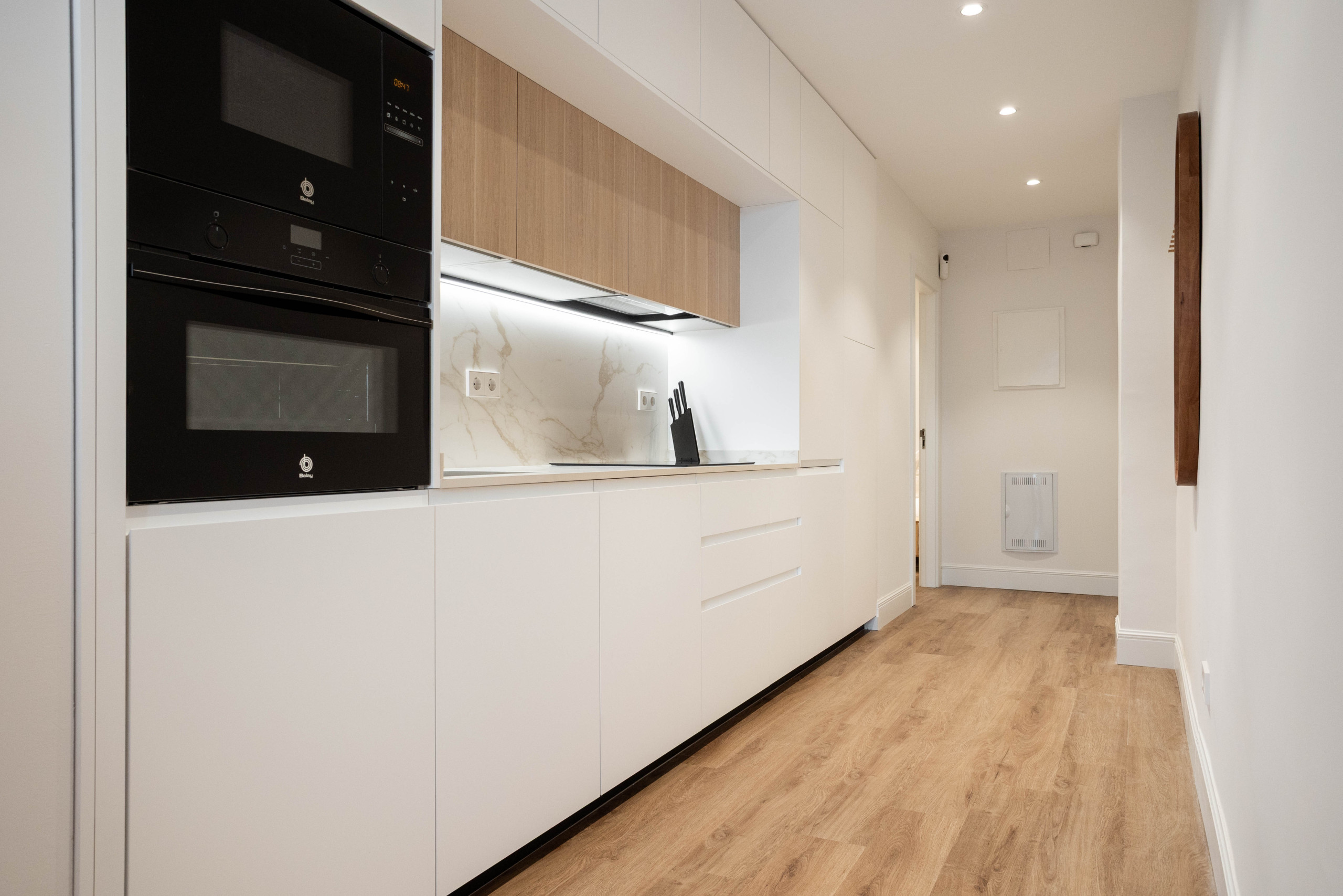 La cocina es de estilo americano, integrada en el espacio principal, moderna y totalmente equipada con electrodomésticos, lo que favorece un ambiente práctico y funcional en el día a día.