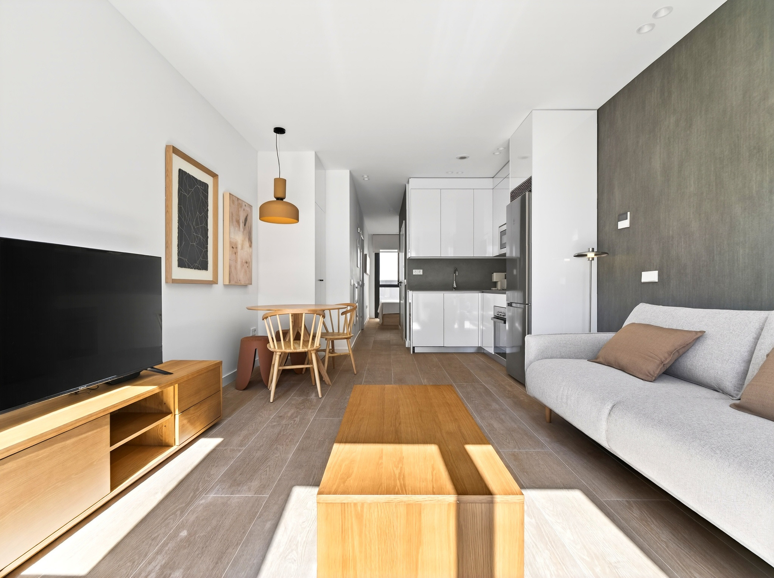 El estudio destaca por su luminosidad, su distribución eficiente y su cuidada decoración contemporánea, ofreciendo un ambiente agradable.