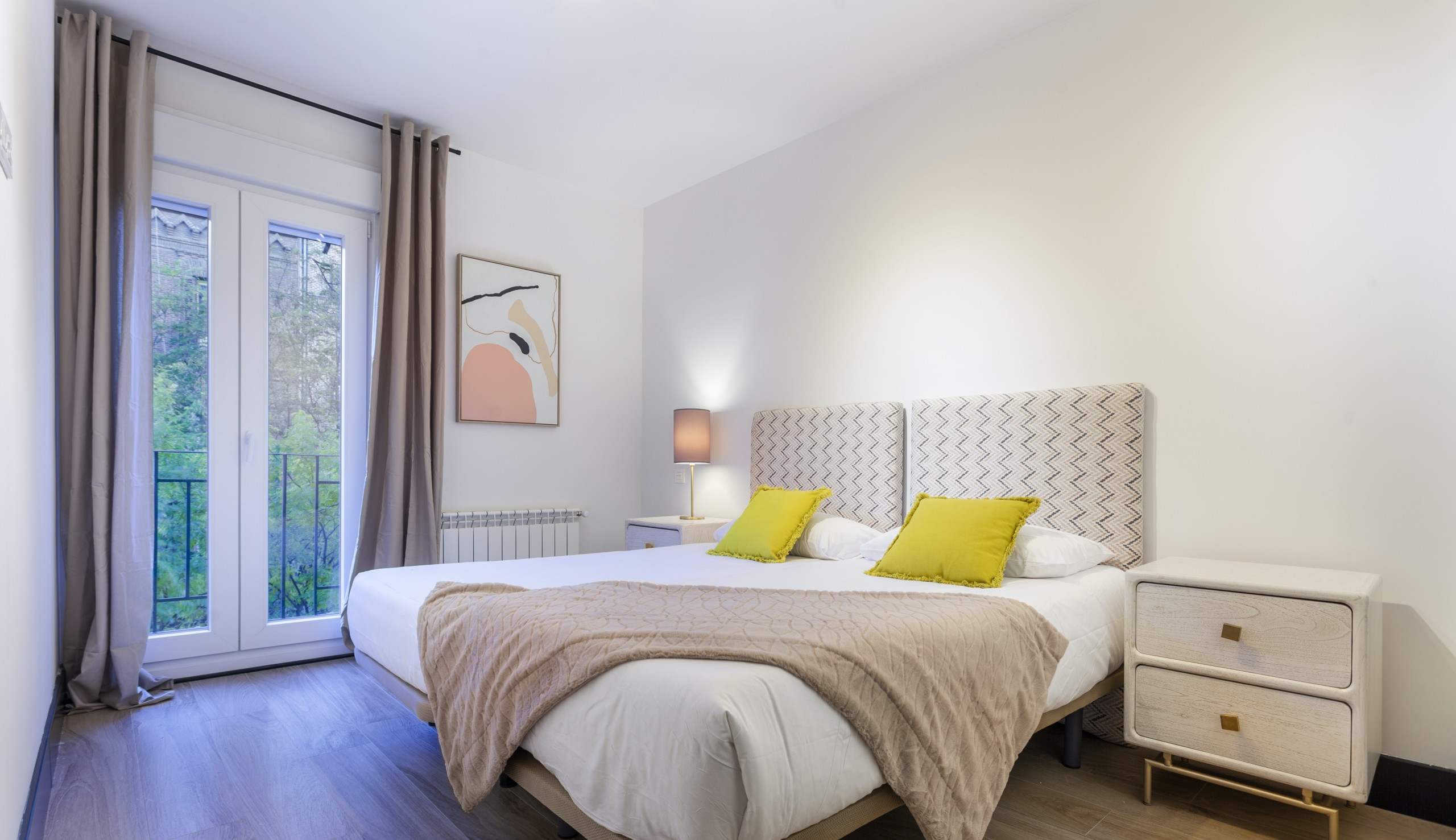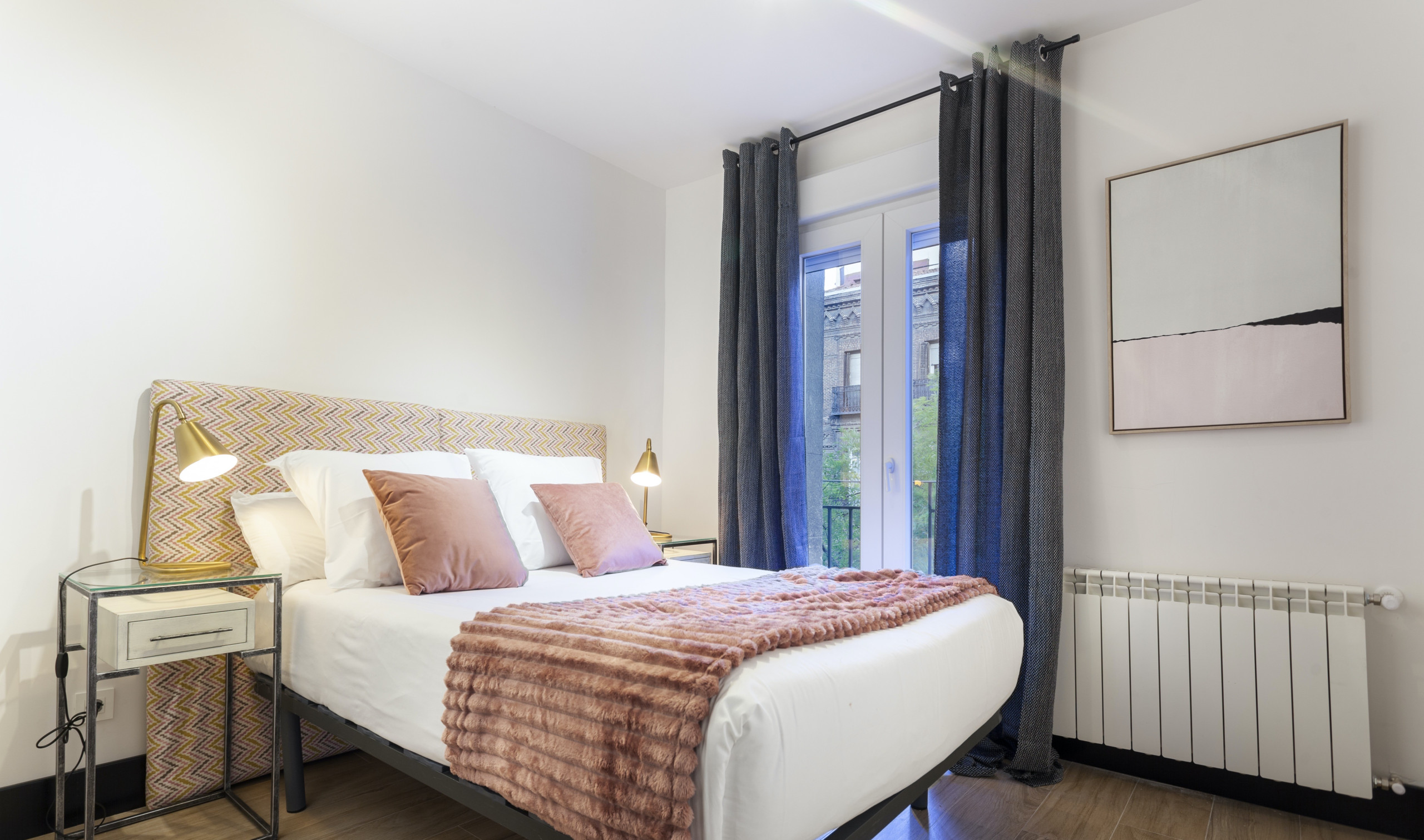 The warm and welcoming Senator apartment features carefully selected furniture in pastel shades and modern, functional decoration that will delight guests looking for charming accommodation in Madrid.