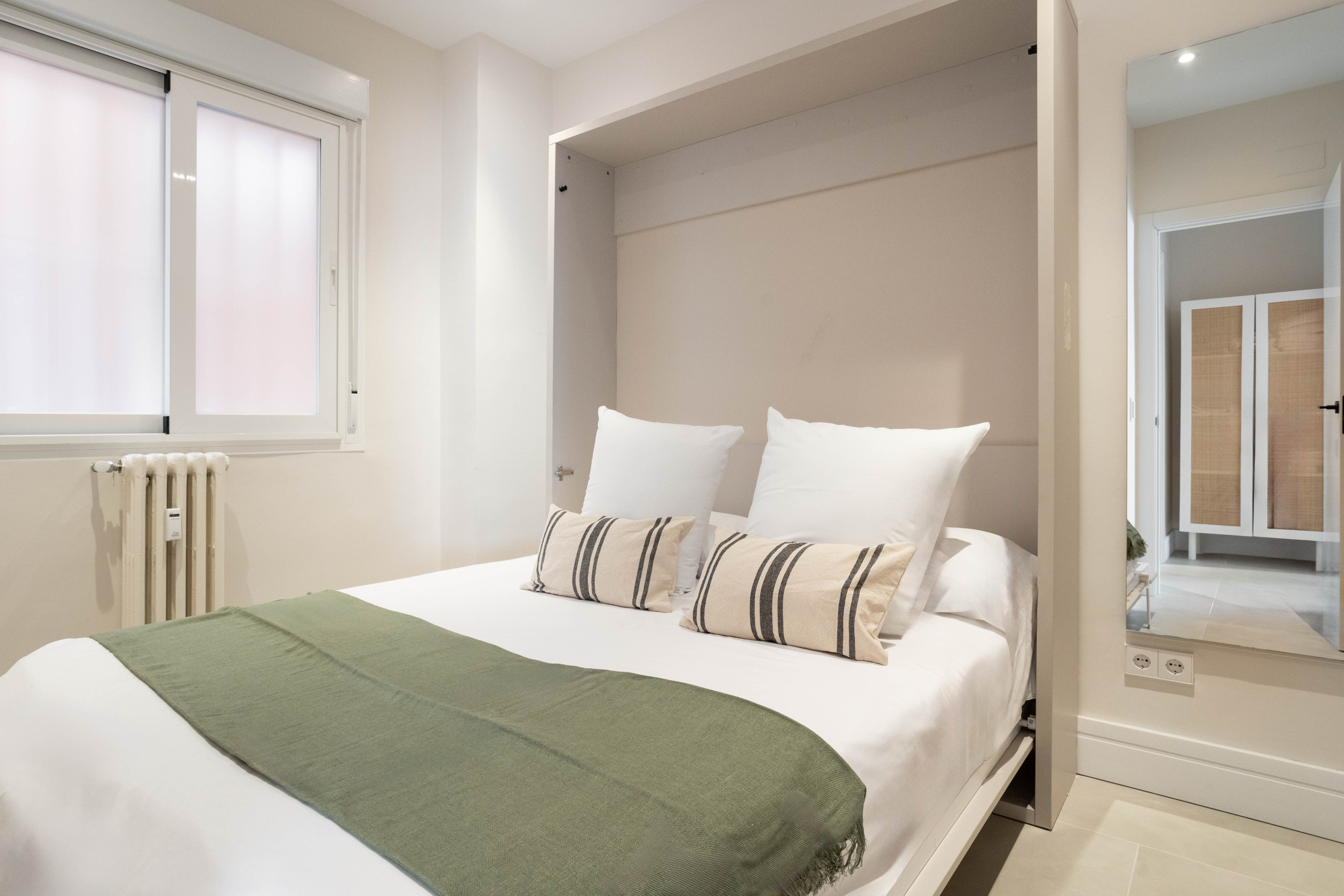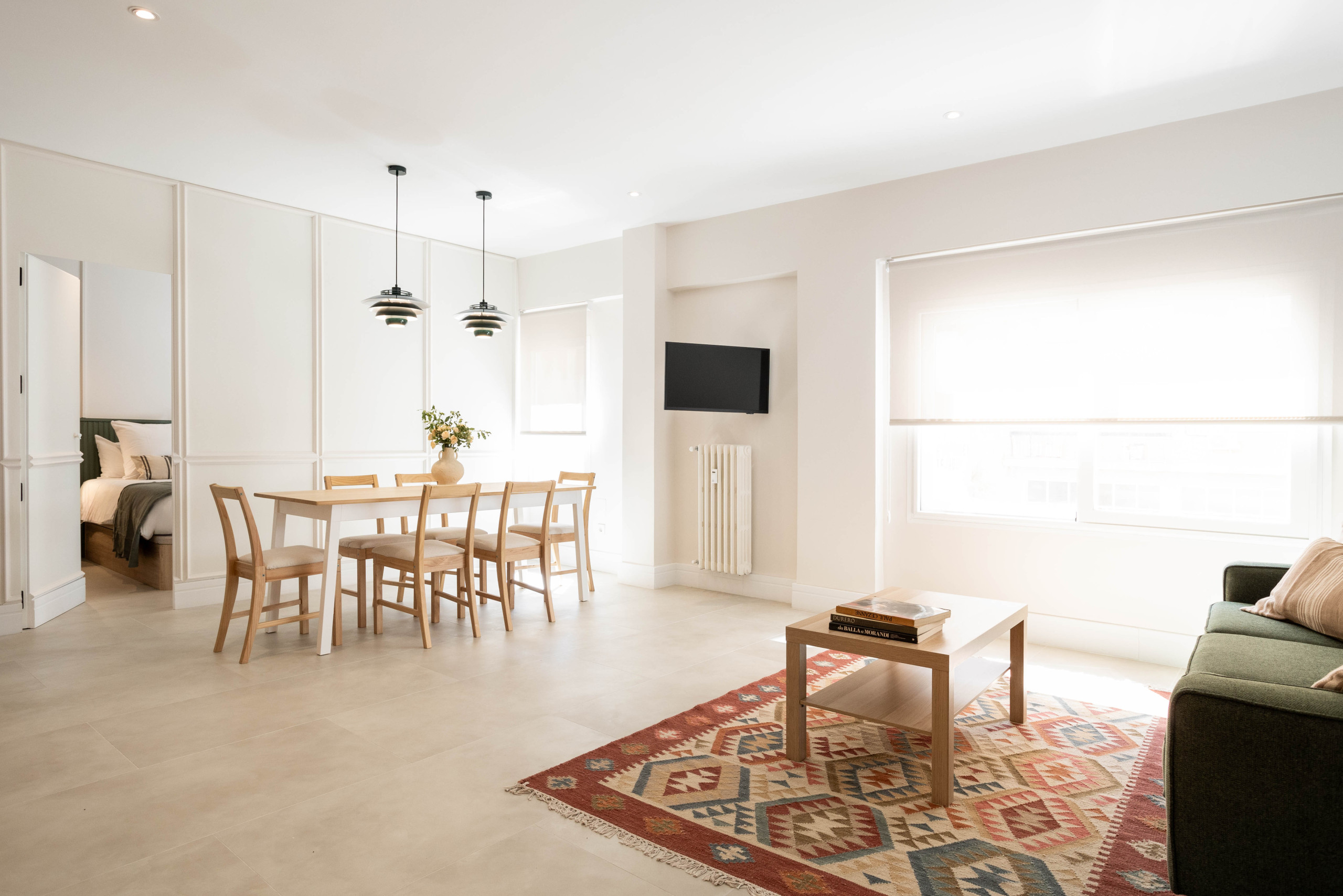 The warm and welcoming Senator apartment features carefully selected furniture in pastel shades and modern, functional decoration that will delight guests looking for charming accommodation in Madrid.